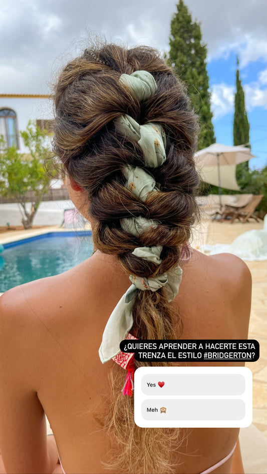 Pañuelo de Seda Verde con Flores Silvestres 🪷 (90 cm x 90 cm)