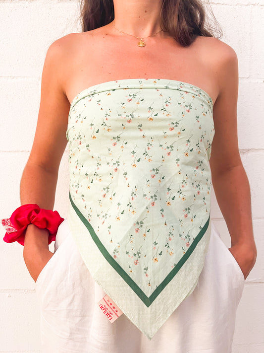 Pañuelo de Algodón Verde con Flores Silvestres (61 cm x 61 cm) 🪷